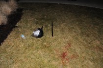 Two pit bulls that bit an east Las Vegas Valley resident were chased away by a single shot fired by a Metro police officer Saturday.