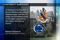 A fraternity at Penn State University has been suspended for posting to Facebook “highly inappropriate photographs,” which reportedly included sleeping nude women, drug sales and hazing, the school said on Tuesday.