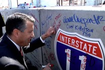 Lawmakers from both sides of the political aisle and transportation leaders from the federal government and two states gathered on a breezy bluff overlooking a four-lane highway bottleneck near the newly reopened Hoover Dam Lodge for a historic groundbreaking for the first section of Interstate 11.