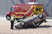 A man and a woman were transported to the hospital after a rollover crash on U.S. Highway 95 Saturday morning, according to the Nevada Highway Patrol.