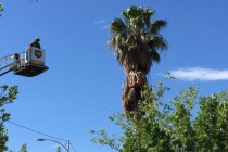 A man stuck in a palm tree was rescued Saturday morning by the Las Vegas Fire Department.