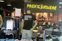 A clothing store is coming under fire after displaying a T-shirt featuring an upside down American flag and anarchist symbol on Memorial Day weekend.