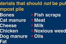 Bones, dog and cat droppings, greasy foods and diseased plants are just a few of the items that should go into the garbage, not your compost.