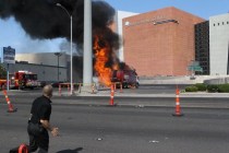 A Republic Services garbage truck erupted in flames near downtown Las Vegas Friday afternoon. The truck burst into flames about 3:52 p.m. in the parking lot of Walker Furniture, on Martin Luther King Boulevard near Alta Drive.