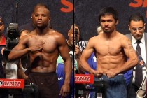 11,500 fans paid $10 apiece to watch Floyd Mayweather Jr. and Manny Pacquiao step onto a scale Friday at the MGM Grand Garden. And when they finally got on the scale, both easily made the 147-pound limit. Pacquiao weighed 145 pounds and Mayweather 146.