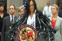 Six Baltimore police officers will face charges in the death of Freddie Gray, the city’s prosecutor said Friday in an unexpected announcement that brought cheers from protesters and words of protest from the police union.