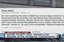 A Detroit prosecutor who said on Facebook that people involved in Baltimore rioting should be shot has resigned, after her comments ignited fierce criticism, the prosecutor’s office said on Friday.