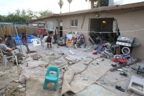 A vehicle drove through a house near Downtown Las Vegas, killing the 79-year-old driver late Sunday night.