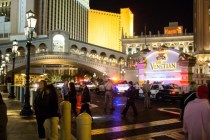 A man armed with razor blades jumped from the pedestrian bridge at the Venetian on Las Vegas Boulevard on Saturday night, police say.
