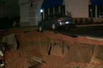 Twelve vehicles were swallowed when a 400-foot-long section of an outdoor parking lot caved in outside a Mississippi pancake house that had only been open for a few days, the Meridian Star newspaper reported, citing local officials.