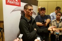 While doing interviews on Thursday in advance of his Saturday night fight against Michael Johnson, Nate Diaz looked at the event poster and realized he was nowhere to be found. So he grabbed a marker and drew himself in as a flexing stick figure with a six-pack of abs.