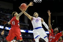 Svi Mykhailiuk scored a career-high 23 points on 9-of-11 shooting and Perry Ellis had 21, leading top-seded Kansas to a 105-79 victory over Austin Peay on Thursday.