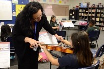 In a room tucked high above the basketball courts at the Lied Memorial Boys & Girls Club, about a dozen students gather for an hour every week to master the arts — not athletics — and play with bows — not balls — as Tianna Harjo introduces them to the violin.