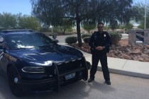 A Clark County School District police officer was indicted by a federal grand jury Tuesday on charges of using excessive force against two people, including a student, at a North Las Vegas disciplinary school and then trying to cover it up.