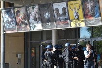 A masked man was shot dead Thursday after entering a movie theater in southwestern Germany with what appeared to be a rifle and taking several hostages, authorities said. No one else was hurt.