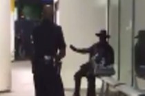 A false report of gunshots that sent panicked travelers fleeing from Los Angeles International Airport came right after officers with weapons drawn detained a masked man dressed in black and possibly carrying a sword, officials said.
