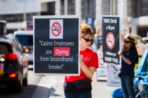 It wasn’t a political issue within the walls of the Global Gaming Expo, but just outside the Sands Exposition Center, a group of protesters were attempting to raise awareness to a longtime casino concern: second-hand smoking.