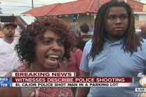 Dozens of demonstrators protested Wednesday outside a suburban San Diego police station after a black man who reportedly was acting erratically at a strip mall was shot and killed by an officer.