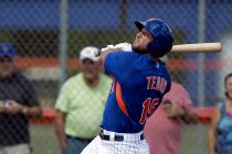 Tim Tebow hit a home run on the first pitch of his first organized game since his junior year of high school on Wednesday in his first at-bat with the New York Mets’ instructional league team.