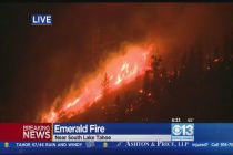 A wind-whipped wildfire raged out of control Friday in Northern Nevada, destroying more than a dozen homes, forcing evacuations, closing roads and schools, and triggering power outages, officials said.