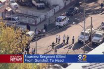 A police sergeant was shot and killed and a second one was wounded Friday in a gunfight on a street with an armed man who had broken into his estranged wife’s home, officials said.