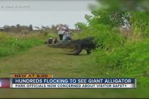 Video of a massive alligator caught walking through a Florida nature reserve in front of stunned onlookers has prompted crowds of people hoping to catch their own glimpse.