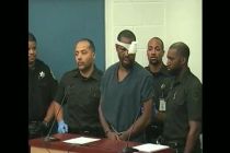 A day after an expletive-laced court appearance on charges he killed his pregnant ex-girlfriend, a fugitive was more subdued but still interrupted a judge when he went before her on five new charges filed against him in the death of Orlando police officer.