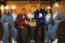 Four curvy construction beauties in hard hats welcomed illusionists Jarrett & Raja to their new showroom Wednesday where they filmed a teaser YouTube video about their upcoming residency. They will reveal all on Monday.