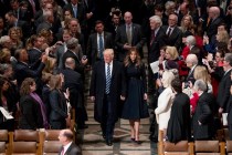 President Donald Trump is opening his first full day in office by attending a prayer service at the Washington National Cathedral.