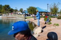 Anglers are catching striped bass with anchovies from the shoreline in the Katherine Landing area of Lake Mohave.