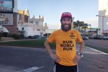 A man running cross-country — so far the distance of about 100 marathons — decided to stop in Las Vegas to catch his breath Thursday. He might look a little familiar to some movie buffs.