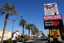Celine Zind and Frederic Spenle were together for 10 years before they traveled from France to the Viva Las Vegas wedding chapel to tie the knot on Valentine’s Day.