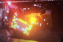 A 3-mile stretch of southbound Interstate-15 is shut down in California’s Cajon Pass after a portion of roadway was washed away, causing a fire engine to tumble off the side of the highway. No one was injured.