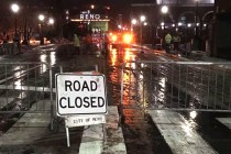 The National Weather Service has issued a flood warning for the Reno area amid heavy rainfall and a winter storm warning in the Sierra Nevada.