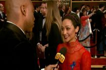 Ruth Negga, dripping in responsibly sourced rubies with a custom Valentino gown to match, accessorized with something extra Sunday on her first Oscar red carpet as a nominee — a blue ribbon in support of the ACLU.
