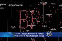 Nearly 200 storm chasers paid tribute Sunday to the late actor Bill Paxton by spelling out his initials using GPS coordinates on a map depicting the heart of Tornado Alley.