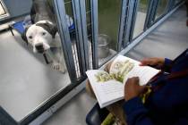Local first-graders took a field trip to the Animal Foundation Wednesday to color, create chew toys, and practice their reading skills on a captive audience: the dogs.