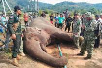 A park ranger in Cambodia says an endangered wild elephant has died after an electrical pole fell and electrocuted the animal.