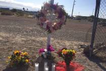 About 10 people gathered Sunday near the intersection of Nellis Boulevard and Carey Avenue to set up a memorial for the woman killed when her car collided with a school bus last week.