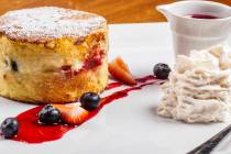 Stuffed french toast with berries, whipped mascarpone, berry gastrique and chantilly cream is on the menu for the new brunch at RM Seafood at The Shoppes at Mandalay Place.