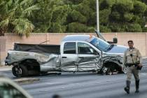 Las Vegas police identified a woman they suspect plowed a stolen pickup into a patrol car and two other cars Wednesday, killing one woman.