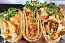 The popular Henderson breakfast and lunch spot Craft Kitchen uses kimchi to add a Korean touch to the shrimp tacos, which are available during lunch hours and at their weekly “Friday Recess” evening hours.