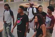 Las Vegas police are searching for seven people involved in a violent robbery last month near the Strip.