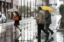 A string of showers and possible flash flooding Saturday will bring the temperature high down 15 degrees below normal inthe Las Vegas Valley.