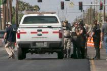 A 65-year-old pedestrian died Tuesday after being struck by a Clark County vehicle in southern Las Vegas.