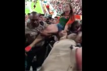 Police are investigating a videotaped altercation where a University of Miami football fan slaps an officer, who then punches her in the head.