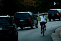 A woman has gotten the boot after flipping the bird at President Donald Trump’s motorcade.