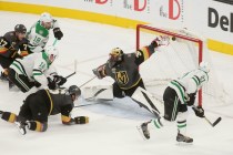 Radek Faksa scored a natural hat trick in a 7:05 span during the second period and the Dallas Stars defeated the Golden Knights 3-0 Tuesday in front of an announced crowd of 17,579 at T-Mobile Arena.