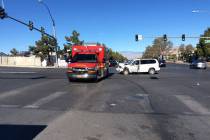 Two people were taken to a hospital after a car crashed head-on into a city bus on in the central valley, Las Vegas fire officials tweeted Saturday.