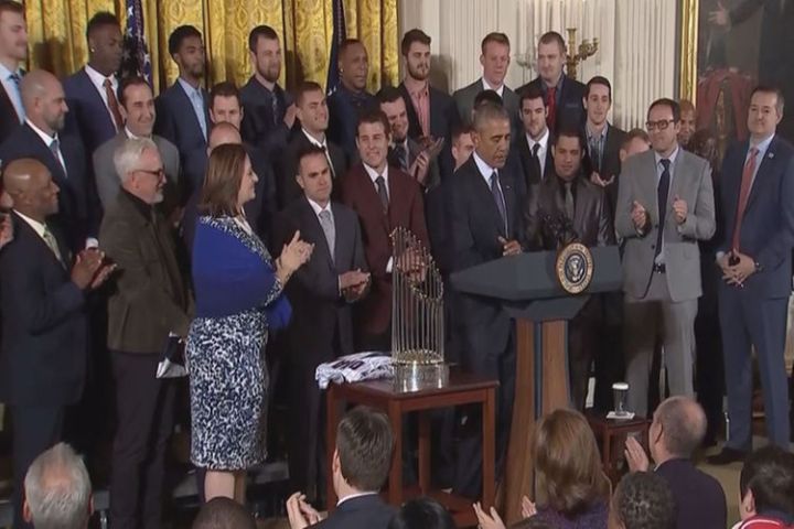 President Barack Obama celebrated the World Series champion Chicago Cubs on Monday and spoke about the power sports has to unite people.